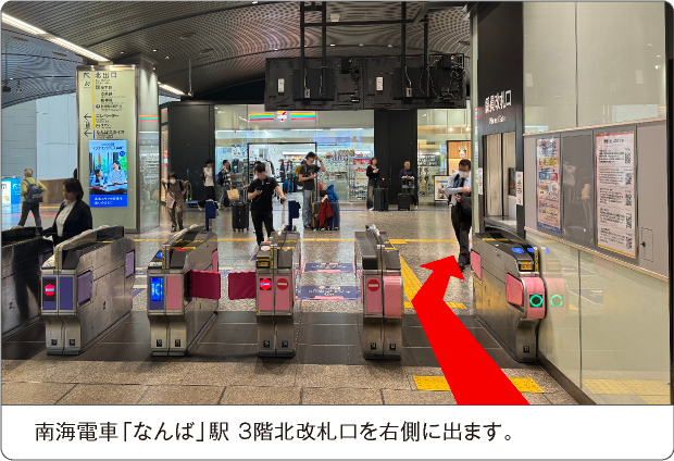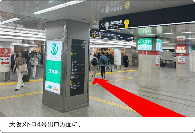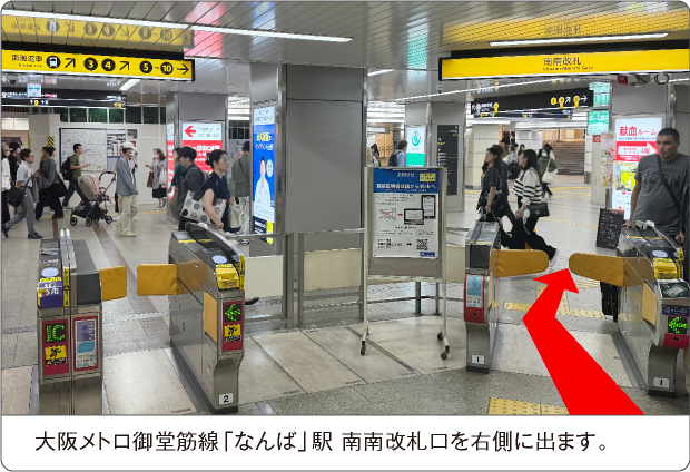 大阪メトロ御堂筋線「なんば駅」南南改札口より、右側 大阪メトロ4号出口方面に進み、